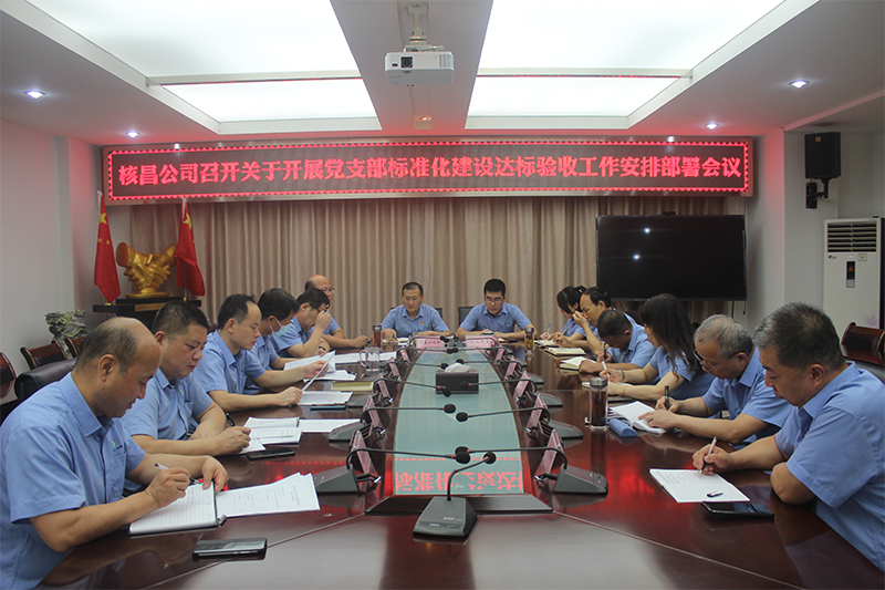 為扎實開展好黨支部標準化建設達標驗收工作,全面提升黨建工作質(zhì)量和水平,9月16日上午,核昌公司黨委召開黨支部標準化建設達標驗收工作部署會,公司黨委委員及領導班子成員、各黨支部書記、團委書記等參加會議,會議由黨委書記、董事長王超宏主持。