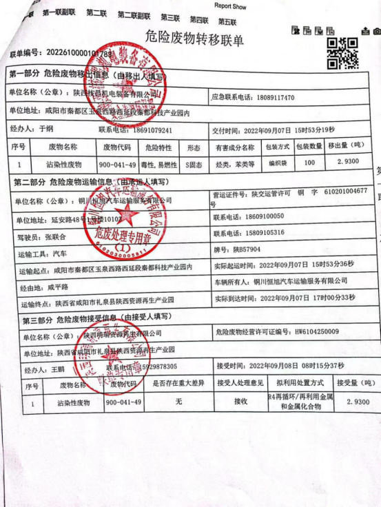 我公司屬機電一體化、機械加工等產(chǎn)業(yè)的生產(chǎn)及經(jīng)營活動, 現(xiàn)階段主要的危險廢物包括:油漆桶、廢機油、乳化液、噴漆、噴砂。油漆桶、廢機油、乳化液等危險廢物處置由陜西明瑞資源再生有限公司承接轉(zhuǎn)運及處理危廢;噴漆、噴砂房等由公司投入大量資金進行升級改造,在經(jīng)營活動中加強職工環(huán)保培訓(xùn),不斷提升職工環(huán)保意識。經(jīng)陜西格林秦灃環(huán)??萍?/span>有限公司監(jiān)測,所排廢氣均達到國家標準。為改善環(huán)境、大氣質(zhì)量作出積極的貢獻。